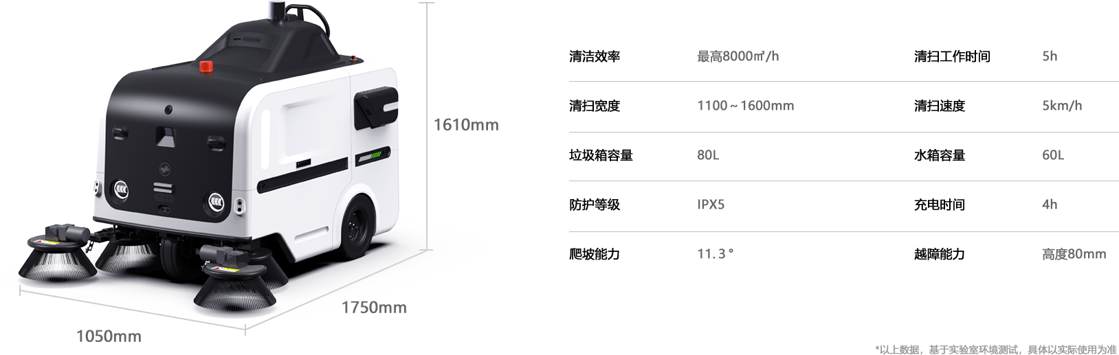 車規(guī)級防雨設(shè)計,自動識別雨天,主動避雨自動開關(guān)垃圾風(fēng)門,靈活清掃各種大小垃圾自動檢測揚塵、噴霧降塵,可調(diào)節(jié)噴水量