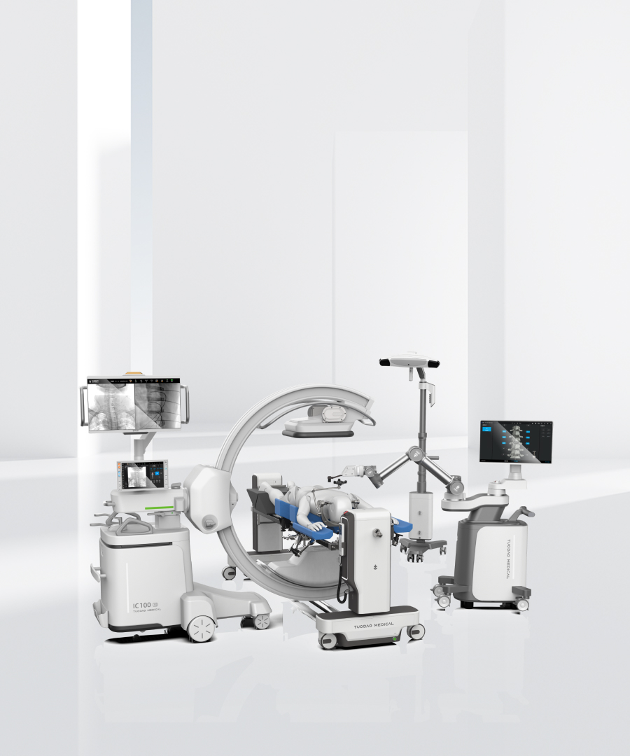佗道醫療在數智骨科領域打造了超融合骨科手術機器人系統,整合骨科手術機器人與三維移動式C形臂X射線機,實現術中影像與機器人導航的無縫融合,提升手術效率和安全性。全骨科手術機器人Trinity支持脊柱、創傷、關節多亞??茟?,具備無影像配準技術,減少輻射暴露。佗道數智骨科已在全國超26個省份醫院裝機應用,覆蓋三甲及基層醫療機構。
