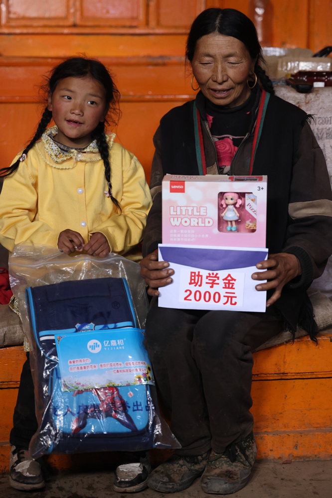 “我叫梅朵卓瑪,我喜歡唱歌跳舞,我長大了想帶爺爺奶奶去天安門廣場上看升國旗。”梅朵卓瑪是個愛笑的女孩,在六一她穿著來自愛心人士買的新裙子和奶奶翩翩起舞,媽媽去世后,爺爺奶奶傾盡所有的愛陪伴著小卓瑪成長,這也讓她成為一個愛笑的姑娘。